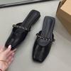 Spring 2025 New One-pedal Half-slippers Women's Korean Version Fashion Chain Flat-bottomed Outer Wear Bag Head Sandals Bag Head Shoes