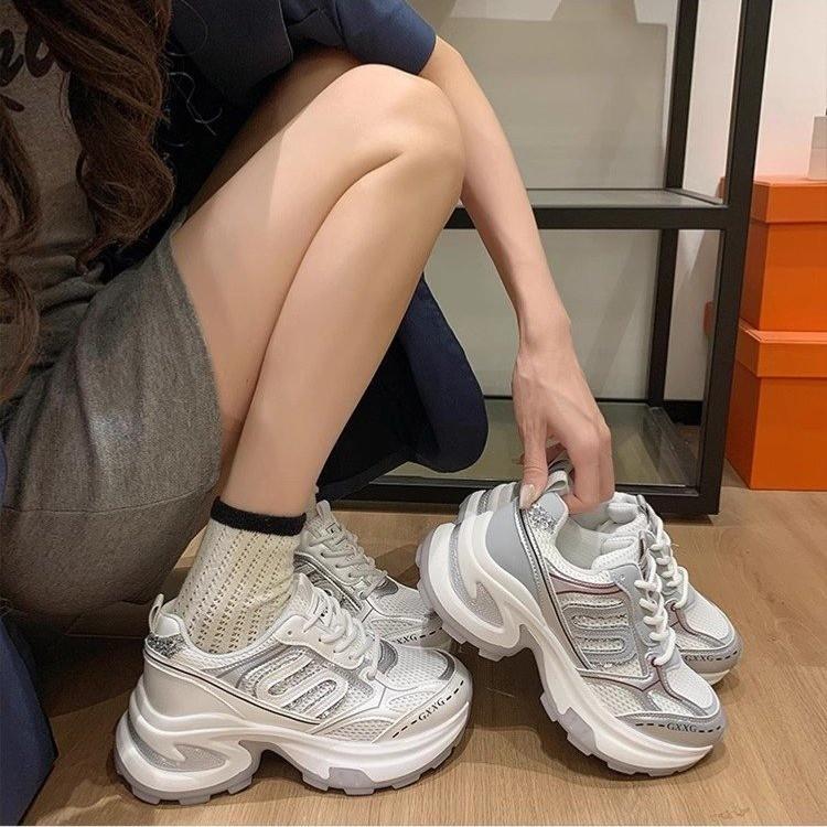 Silver Daddy Shoes Women's 2025 New Spring and Summer Platform Shoes Explode Height Niche Casual Versatile Breathable Sneakers