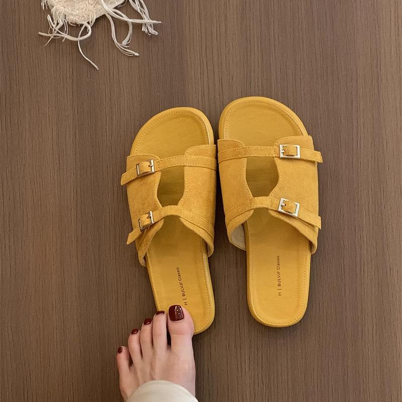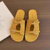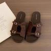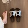 Korean Version of Silver Slippers Women's Summer Wear New French Retro One-word Sandals Holiday Seaside Beach Flat Sandals