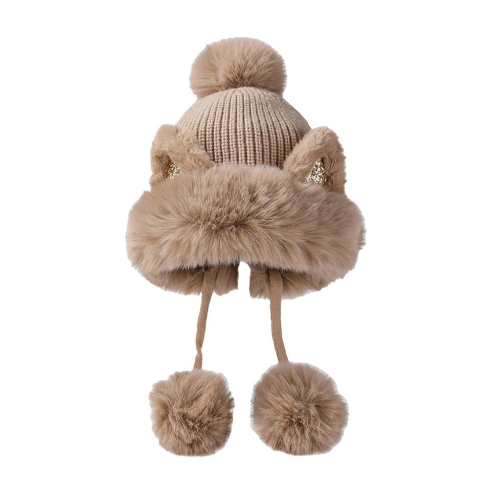 White Fang Winter Cat Ear Hat with Fluffy Cute Animal CZ381 Women's Ears, Costume, (Khaki)