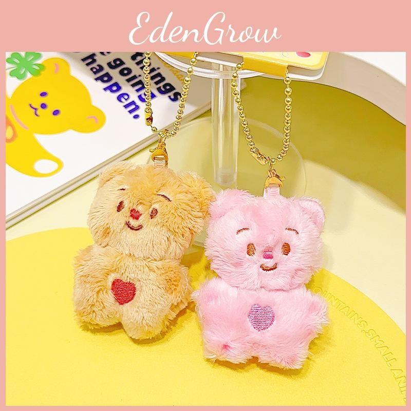 This plush keychain features adorable cartoon designs, including a cream-colored bear and heart-shaped pair, crafted from soft plush material, it offers a lightweight and durable accessory for keys or bags. Ideal for use as a cute gift or decorative charm, it supports daily wear and handling. Wipe clean with a damp cloth for maintenance.
