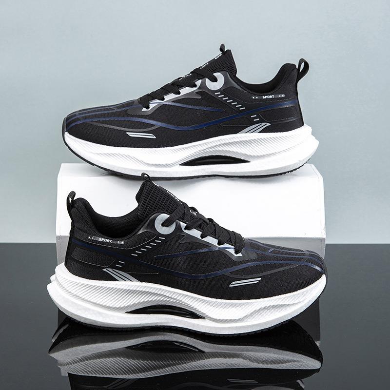 New Men's Shoes Sports Spring Fly-woven Mesh Running Breathable Soft Sole Casual Versatile Carbon Board Shock-absorbing Coconut Mesh Shoes