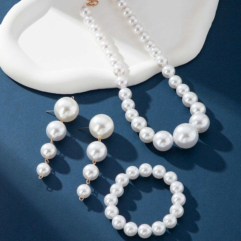 Four-piece Set, Earrings, Bracelet, Necklace Set, French Retro Court Style Imitation Pearl Women's Niche High-end Set.