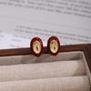Silver Needle Red Heart Pearl Drip Stud Earrings: French Retro Vintage Ear Cuffs for Autumn and Winter.