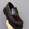 Leather Shoes Men's Summer New Hollow Breathable Woven Leather Business Platform Casual Shoes One Pedal
