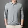 Autumn Ice Silk Markless Long-sleeved T-shirt Men's POLO Shirt New Solid Color Lapel Top