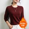 Wool Blended Shirt Autumn and Winter New Ankola Red Crew Neck Fleece Bottoming Shirt Slim-fit Polished Top