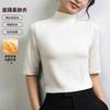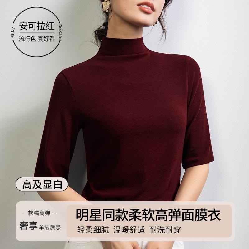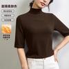 Half Turtleneck Medium-sleeved T-shirt Women's Half-sleeved Inner Bottoming Shirt Autumn New Front Shoulder Slim-fitting Five-quarter-sleeved Top