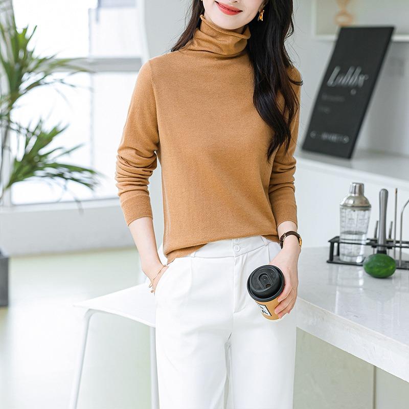 0 Wool Sweater Women's Loose and Thin Long Sleeves Stacked Collar Curled Pullover Sweater Backing Knitted Top Thin New