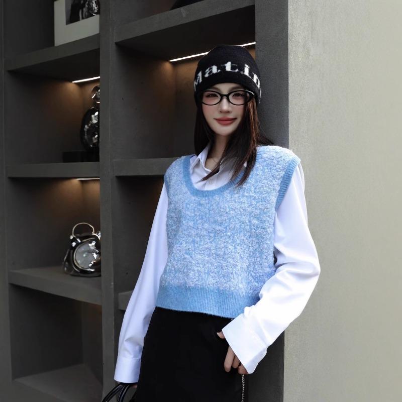 Soft Waxy Skin-friendly Alpaca Wool Blended Neck Knitted Sweater Women's Autumn New Sweater, Thin Stacked Vest