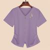 Summer New V-neck Irregular Hem Split Design Sense Niche Versatile Top White Short-sleeved Shirt Women