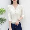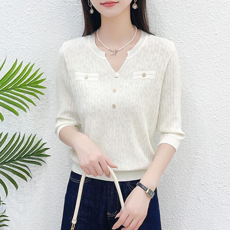 Early Spring Medium-sleeved Top, Women's Five-quarter-sleeved Spring and Summer Wear, Ice Silk Knitted Sweater, Early Spring Bottoming Shirt