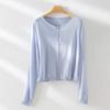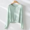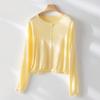 Single-breasted Knitted Cardigan Women's Summer New Tencel Sunscreen Lazy Casual Round Neck Long-sleeved Top Jacket