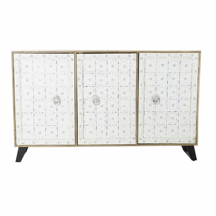 Buffet en bois de manguier - Modèle - 3 portes - Finition patinée - Couleur blanche