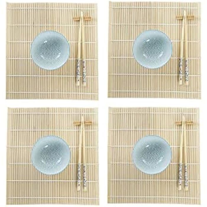 Ensemble De Sushi - DKD Home Decor - Standard - Bambou Et Grès - 14,5 X 14,5 X 31 Cm - Bleu