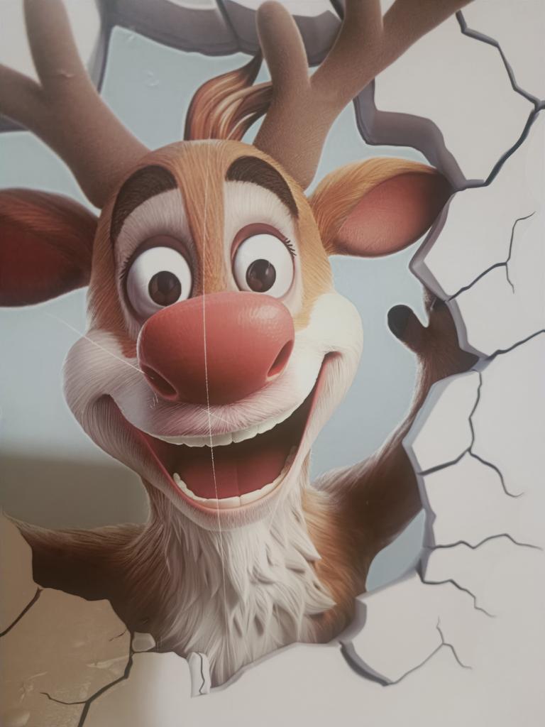 3D Reindeer Break-Through Wall Decal, Vinyl Christmas Wall Stickers, Removable Holiday Decor for Home and Living Spaces