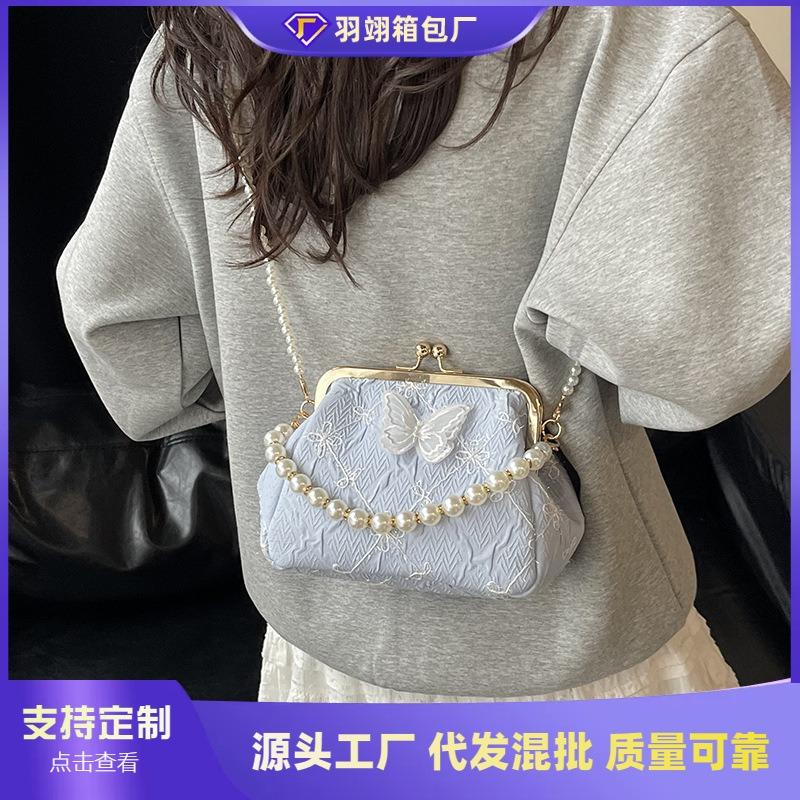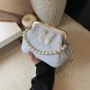 Embroidery Small Bag Women's Summer New Fashion Pearl Chain Mouth Gold Bag Versatile Messenger Bag