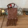 Small Square Bag Women's New Niche Fashion Rivet Fringed Bag Single Shoulder Messenger Bag