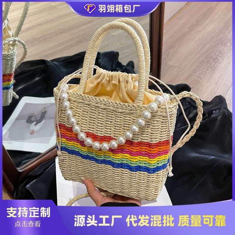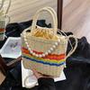 Rainbow Striped Woven Bag Women's New Seaside Vacation Bag Portable Shoulder Bag Versatile Messenger Bag