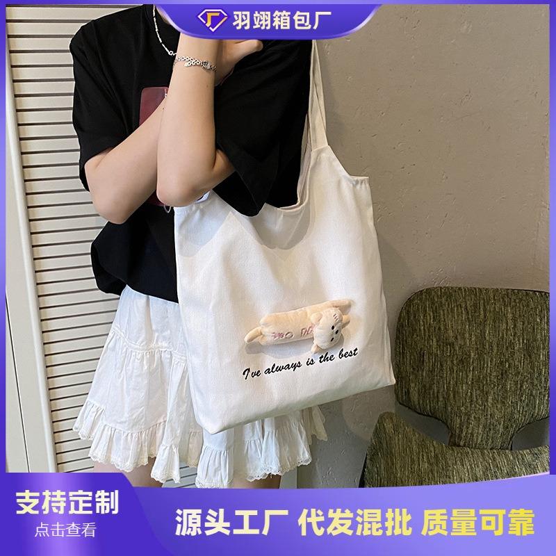 Canvas Bag Women's Large-capacity New Versatile Shoulder Make-up Bag Casual College Student Class Tote Bag