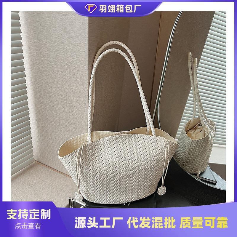 Large Capacity Woven Vegetable Basket Bag Women's Summer New Shoulder Underarm Mother Bag Commuter Tote Bag
