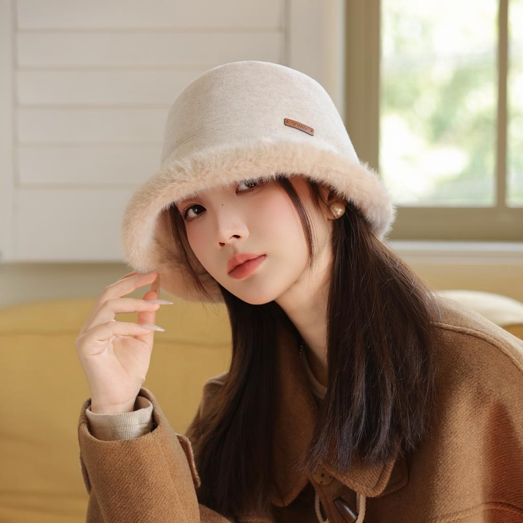 New Autumn and Winter Plush Fisherman Hat for Women Fashion Versatile Warm Basin Hat Showing Face Small Bucket Hat Temperament Bristle Hat