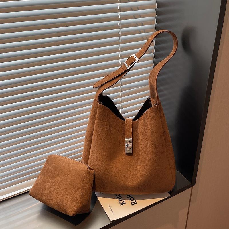 Simple Large-capacity Bag New Commuter Women's Shoulder Underarm Bag Casual Suede Bucket Bag