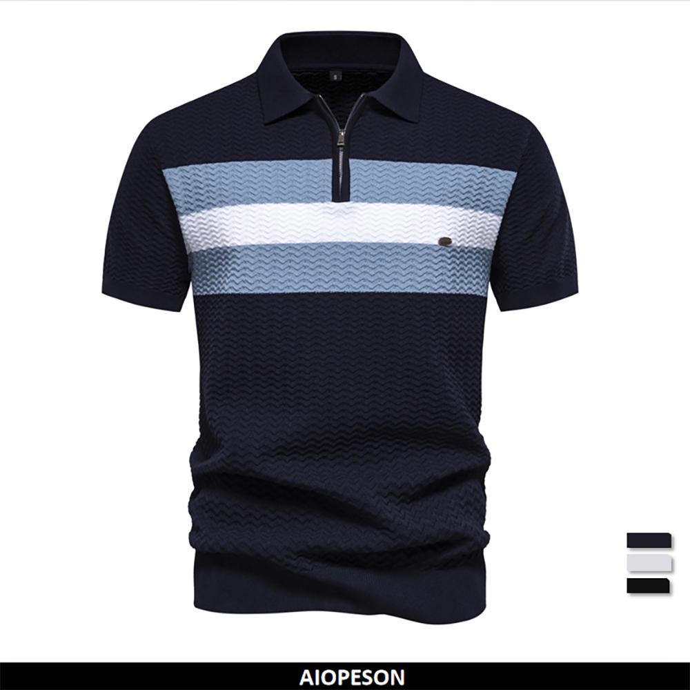 New Summer Textured Ribbed Knit Polo Shirt for Men Short Sleeve Breathable and Cool Mens Polo Shirts