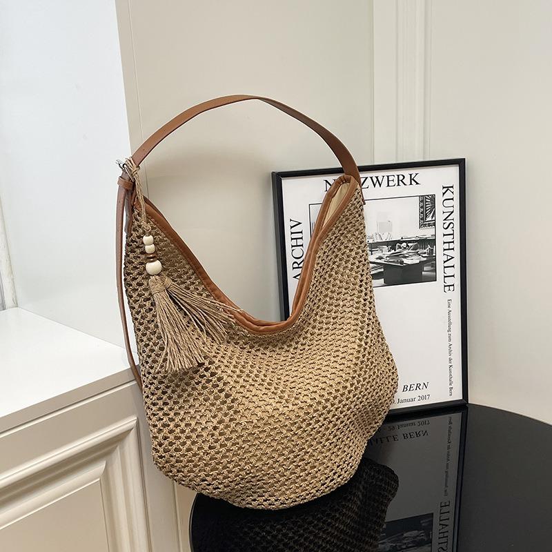 Vintage Woven Tote Bag Straw Bag Large Capacity Armpit Bag Shoulder Bag Holiday Wind Beach Bag Women