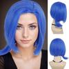Synthetic Hair Short Straight Blue Bob Cosplay Wigs for Women Anime Cartoon Costume Wig with Glasses Set Halloween Party Use