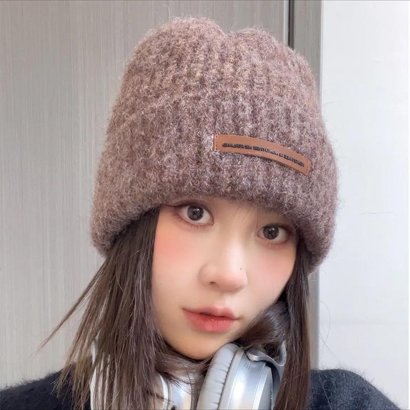 New Autumn and Winter Hats for Women Fashion Versatile Knitted Hat Letters Long Label Warm Wool Bag Head Hat Casual Pile Hat
