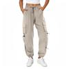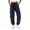Ladies' Solid Color Elastic Waist Multi Pocket Workwear With Drawstring Casual Pants
