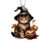 Surface Acrylic Flat Pendant With Cat Witch Hat And Pumpkin Design For Halloween