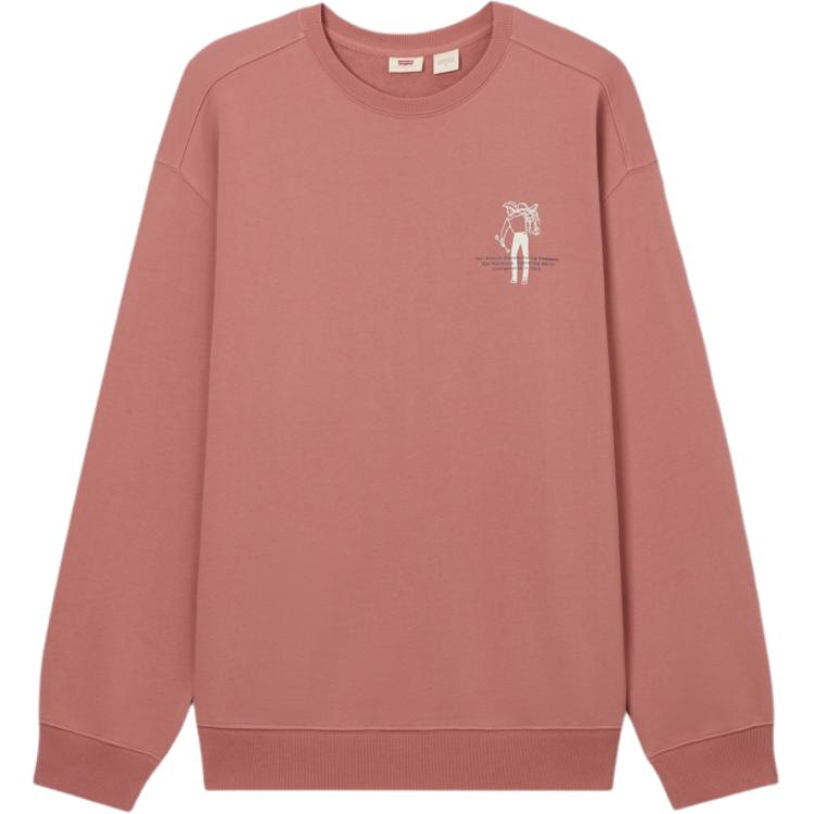 Levis Loose Casual Comfortable Letter Ribbed Crew Neck Long Sleeve Sweatshirt Men Sweatshirt Red-Brown 002Y3-0001