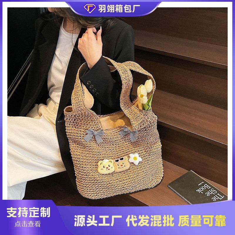 Spring Popular Large-capacity Hollow Design Woven Bag Women's New Bow Shoulder Straw Woven Tote Bag