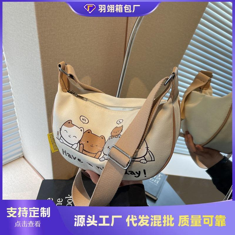 Niche Design Canvas Dumpling Bag Women's New Cartoon Printed Shoulder Bag Versatile Messenger Bag