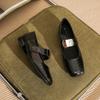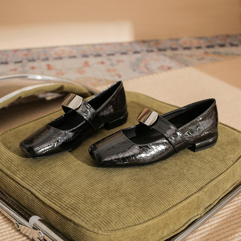 2301 Flat Shoes Women's Thick Heel New Square Head Silver Word with Mary Jane Shoes French Low Heel Light Mouth Single Shoes
