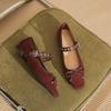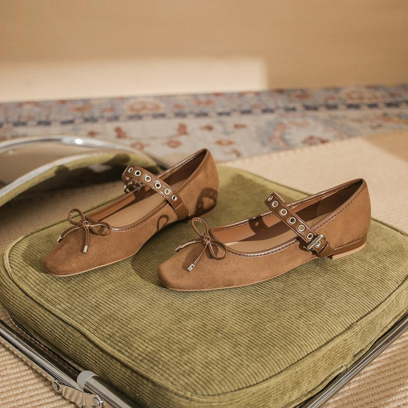 22307 Flat Shoes Women's Thick Heel New Square Head Word with Mary Jane Shoes French Suede Bow Single Shoes