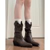 Cowhide Version~ Leather Thin Pointed Thick Heel Short Boots Women's Autumn and Winter New Stacking Boots Western Cowboy Boots Martin Boots