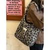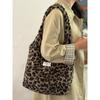 Korean Retro Leopard Print Tote Bag New Fashion College Style Underarm Bag Large Capacity Casual Plush Shoulder Bag