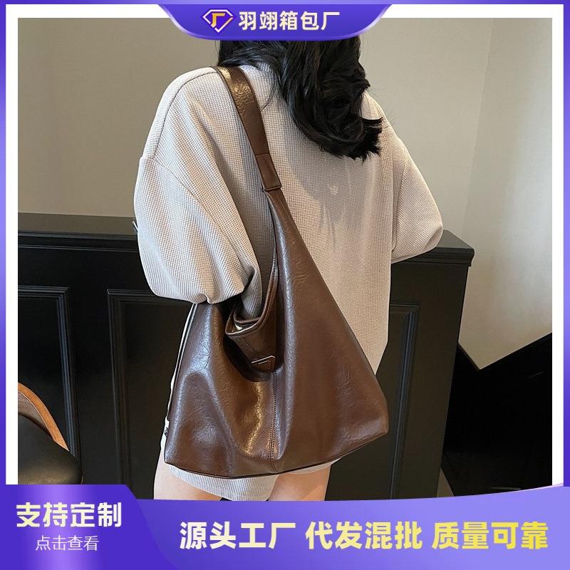 New Retro Large-capacity Armpit Bag Female Tote Bag with Simple Texture and One-shoulder Tote Bag.