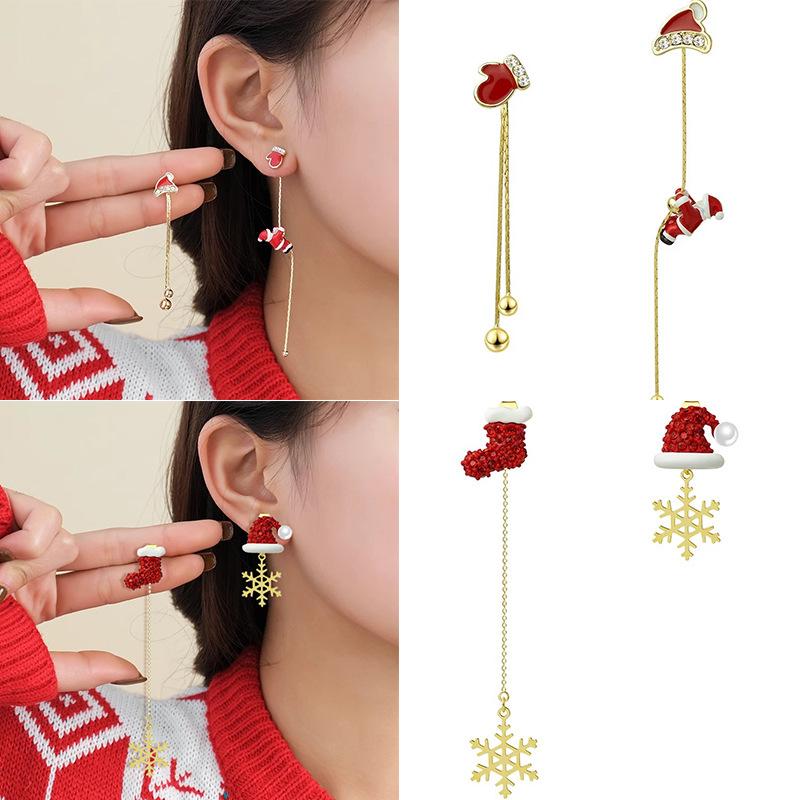 1 Pair of Fashionable Christmas Earrings Christmas Tree Women's Tassel Long Asymmetrical Snowflake Exquisite Ladies Long Chain Holiday Earrings