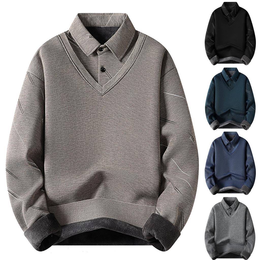 Men's Casual Color-blocking And Patchwork Style Two-piece Hoodie, Men's Loose V-neck Patchwork Lapel Shirt Hoodie