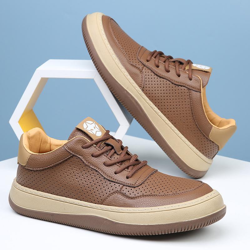 Shoes Men's Board Shoes Leather Spring and Summer New Thick-soled Hollow Holes Sports and Leisure Shoes Men's Breathable Little White Shoes