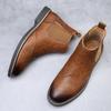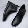 Chelsea Boots Men's British Style Carved Short Boots Soft Leather Retro High-top Men's Leather Boots Autumn and Winter Velvet Martin Boots