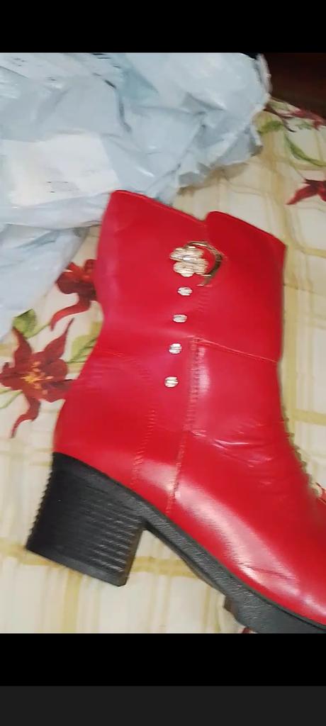 Casual Mid-calf Boots for Womens Chunky High Heels Shoe Winter Plush Warm Side Zipper Modern Boot Black Red Botas