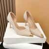 1366-1 European and American Pointed-toed Woven High Heels Women's Thin Heels New French Sexy Metal Toe Head Shallow Mouth Single Shoes