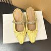 317-2 French Cloth Rhinestone Square Head Middle Heel Single Shoes New Bow Pleated Bag Head Empty Single Shoes Women's Shoes