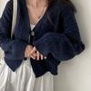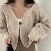 Long Sleeve V-neck Twist Design Short Cardigan Sweater Solid Color Knitted Jacket Fall Autumn and Winter Loose Retro Casual Women's Clothing