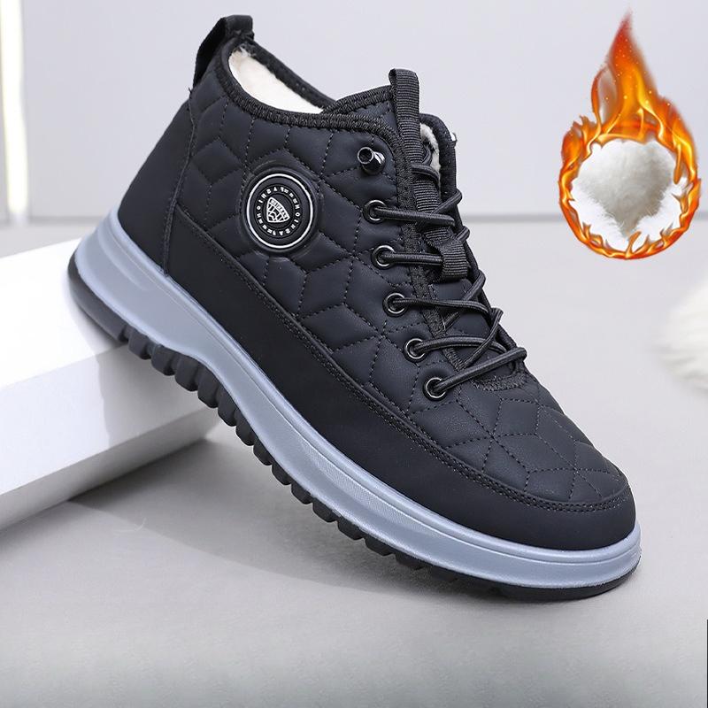 Mens Large Size Soft Sole Lace Up Winter Warm Fur One Snow Boots Padded Wool Lined Ankle Boots Non-Slip Hiking Sports Cotton Boots